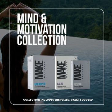 Clear the fog with the Mind & Motivation Collection—a curated collection designed to open your mind and increase your motivation for peak productivity. Featuring three MAKE Wellness products—CALM, FOCUSED, AND ENERGIZED—this collection creates a powerful mind, motivation and energy supporting trio, addressing cognitive performance, energy, and stress resilience.